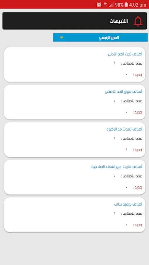 # Alerts where minimum, validity, maximum, negative balance, recession