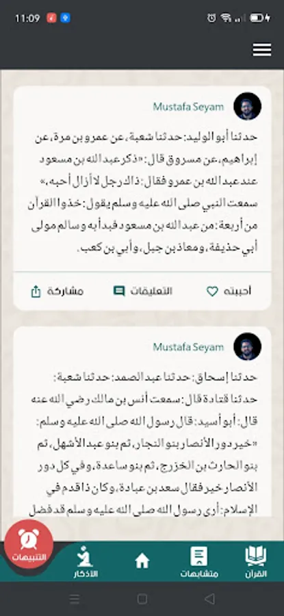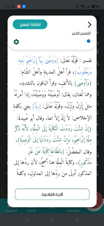 While you are reading the Qur’an, you can select any verse, listen and watch Al-Shaarawy’s interpretation of it. You can also read the interpretation of the verse and copy it, knowing the benefits, rhetoric, syntax, and reasons for revelation. You can also hear the verse with the sheikh of your choice.