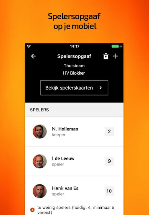 • Add (spelerspas) pictures to all team members by the team manager