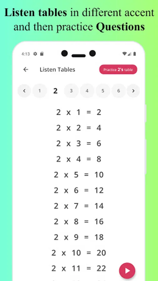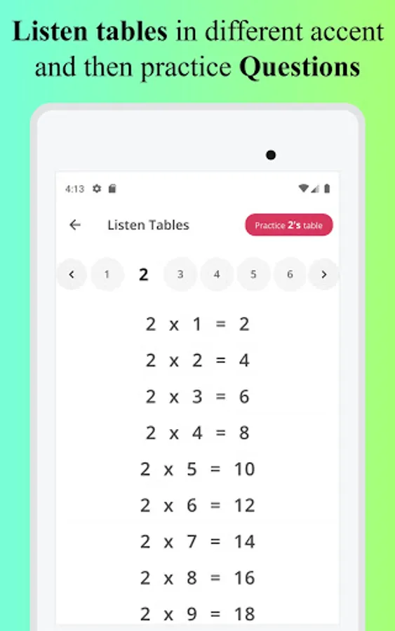 With this app, you can also learn table from tables 2 to 20 or 2 se 20 tak pahada and also tables 1 to 20.