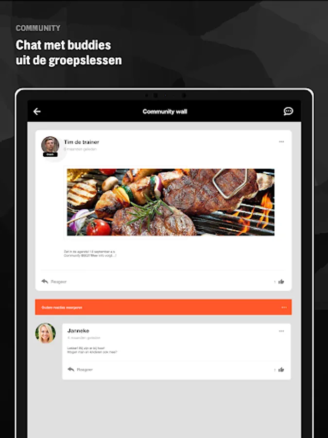 - Houd je trainingprogressies bij en volg je trainingbuddies.