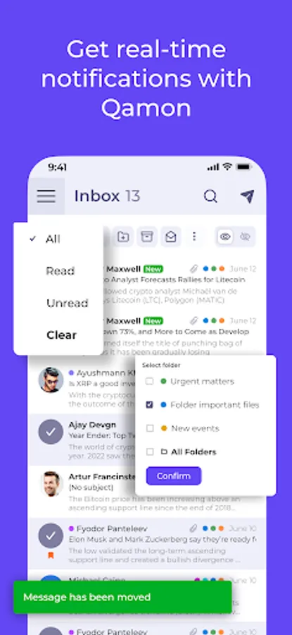 Full email functionality. You can use Qamon the same way you use other email services, but with us, you know your data's safe.