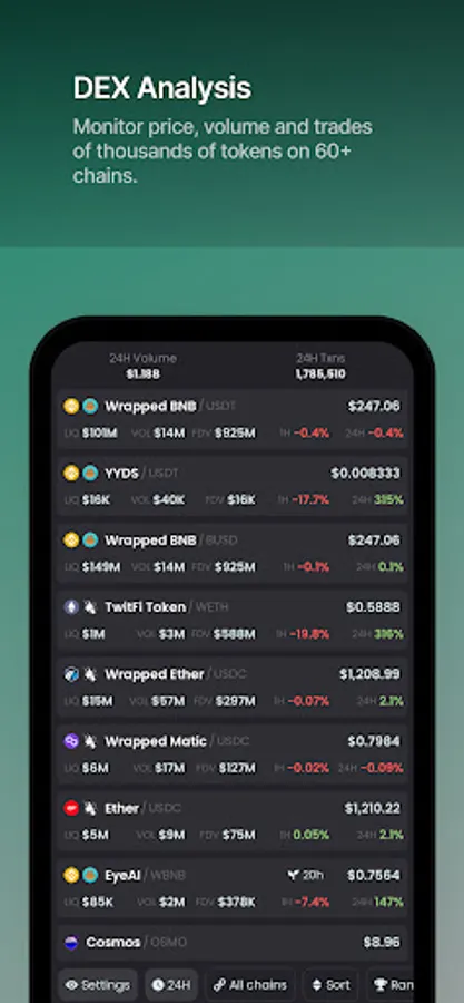 - Support for 60+ chains, hundreds of DEXes and hundreds of thousands of pairs