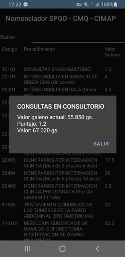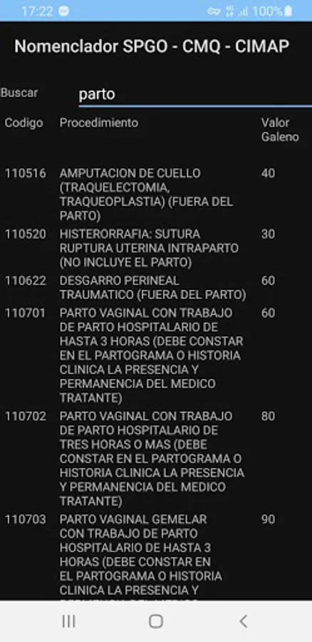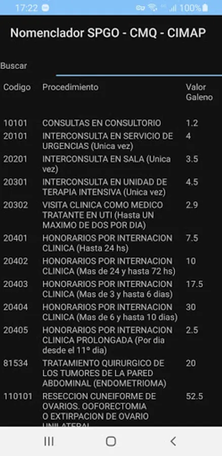 Simple procedure code filter with detail of points, medical value and total value of the procedure, updated to values for 2021.