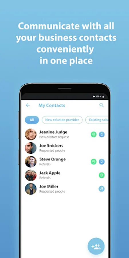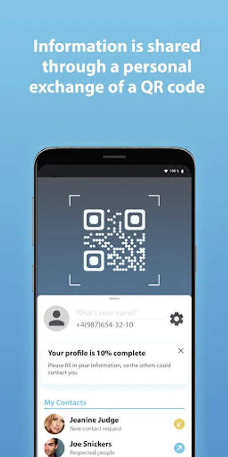DEXY is a person to person app, meaning, information is shared through a personal exchange of a QR code or by directly giving a cell phone number. This is meant to ensure only the contacts you wish to make are in your DEXY. This helps eliminate the barrage of unwanted connection requests like other popular business linking aps.