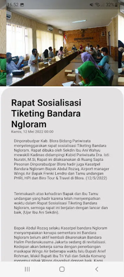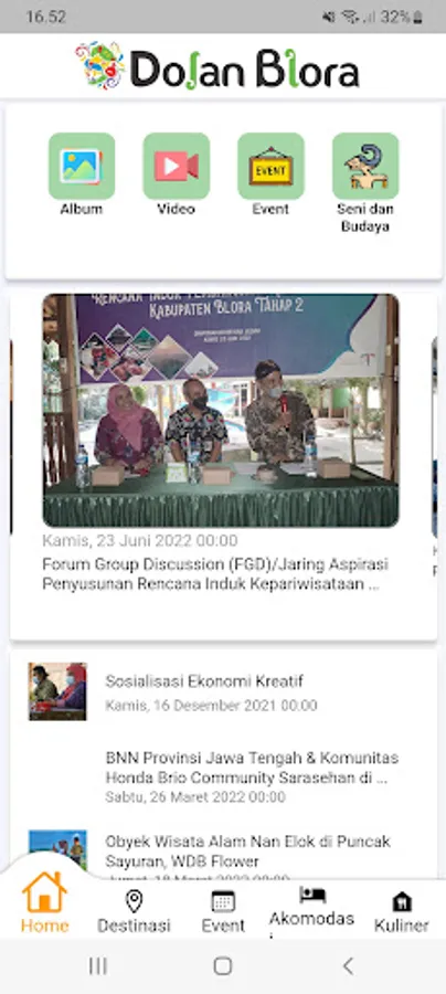 Is an application published by the DEPARTMENT OF PUBLIC SPORTS, CULTURE AND TOURISM (DINPORABUDPAR), to make it easier to provide information about tourist destinations and events in Blora district