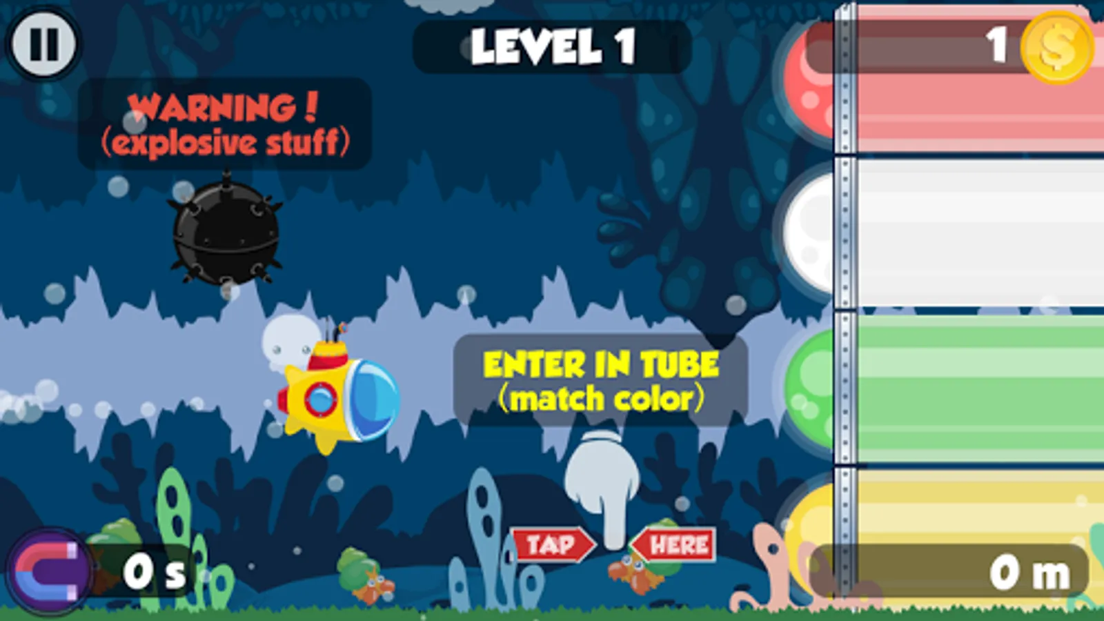 When endless runner genre meet colour matching game the result is Little Rainbow Submarine. Beautiful draw and flawlessly animated with some great sound and visual effects.