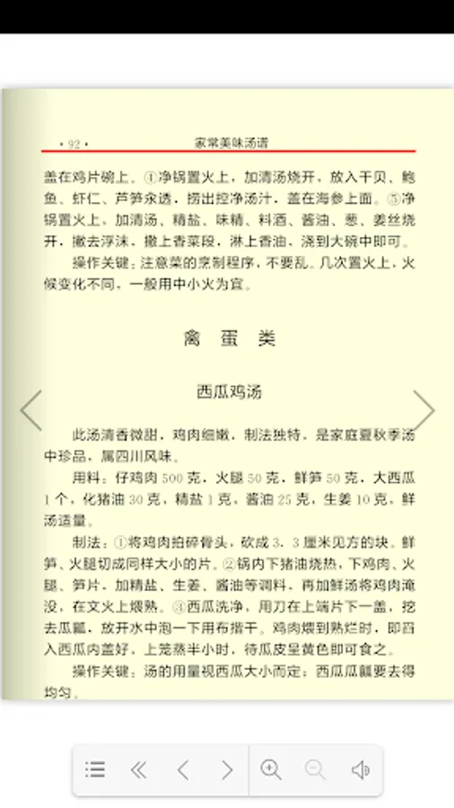 《家常美味汤谱》专门介绍汤菜的烹调技术,简要叙述了有关汤菜的历史发展,作用、分类及制作特点等一般知识,具体传授了5大类270种风味各异的美味汤菜的用料、制法及操作关键。品种丰富,简便易学,具有较强的实用性。