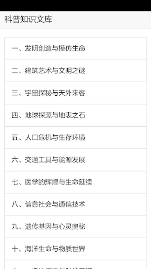 《科普知识文库》提供大量的科普类知识介绍,包括:发明创造与模仿生命、建筑艺术与文明之谜、宇宙探秘与天外来客、地球探源与地表之石、人口危机与生存环境、交通工具与能源发展、医学的辉煌与生命延续、信息社会与通信技术、遗传基因与心灵奥秘、海洋生命与物质世界、极地探索与科技星河、文明宠儿与印刷革命等,让你获取更多科普知识的同时,让科技知识在网上和生活中流行。