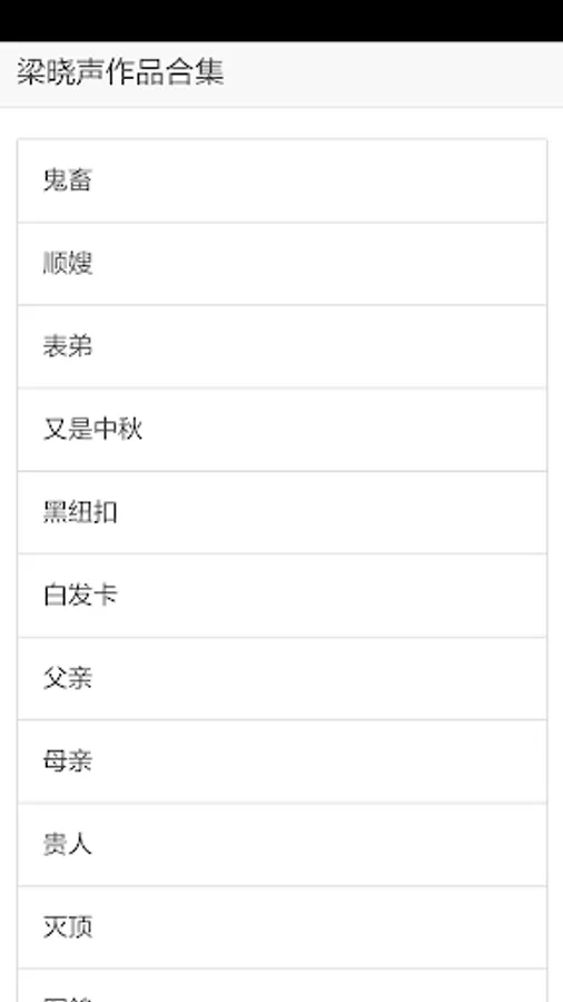 "Collection of Liang Xiaosheng's Works" includes: ghost animals, shun 嫂, cousin, and also Mid-Autumn Festival, black button, white hair card, father, mother, noble, annihilation, military pigeon, blood stasis, killing, big bird, teacher, abandoned , speech, deafness, human fireworks, sturdy university, Songhuajiang wave, Yanjiang dialect, moon total eclipse, the ruins of the old court, the death of scholars, the father of Sui, Sima Dun, the master of the fitter, the flowers of the mountains Children, singing girls, students, Xiao Jing, Qiu Zhixuan, Xunzi, Silence Right, Archives, Red Mill, etc.