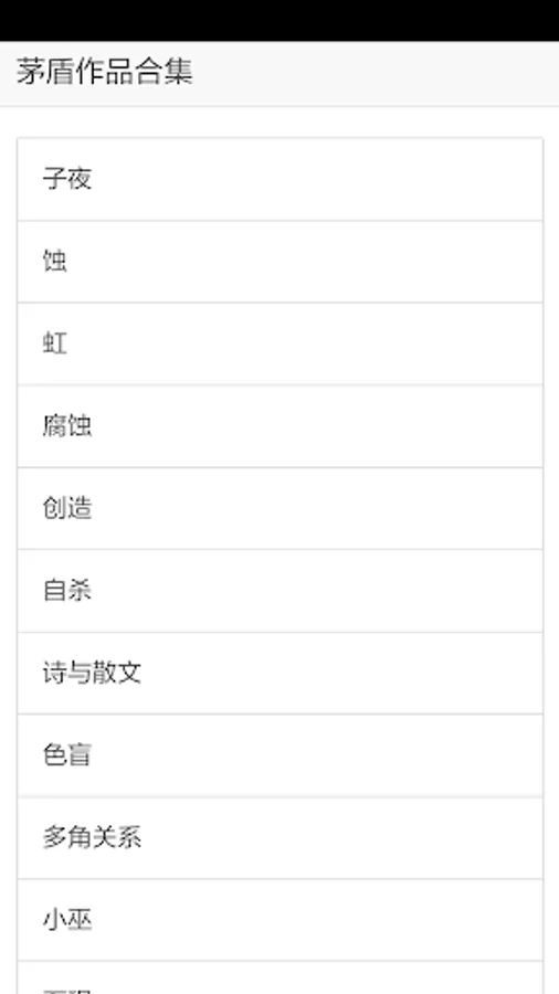 《茅盾作品合集》收录了:子夜、蚀、虹、腐蚀、创造、自杀、诗与散文、色盲、多角关系、小巫、石碣、锻炼、有志者、大鼻子的故事、烟云、手的故事、水藻行、报施、霜叶红似二月花、霜叶红似二月花续稿、林家铺子、春蚕。