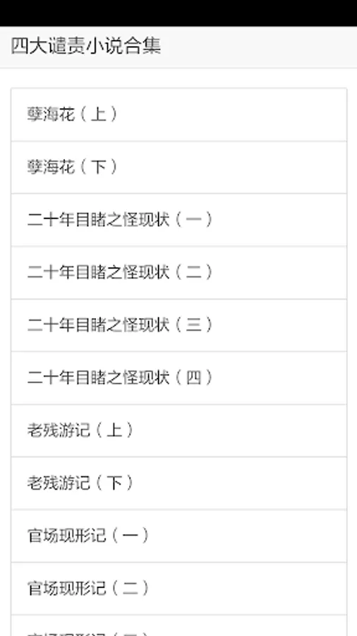 晚清四大谴责小说指的是李伯元的《官场现形记》、吴趼人的《二十年目睹之怪现状》、刘鹗的《老残游记》和曾朴的《孽海花》四部小说。
