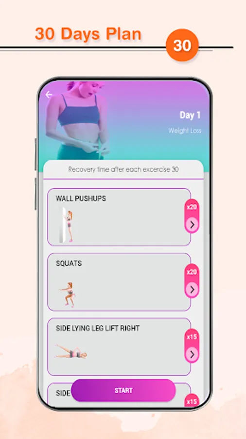 You just need to complete the abs exercises from day 1 to day 30. The exercises are suitable for all different levels of exercisers. You can workout anytime and anywhere, at home or outside.