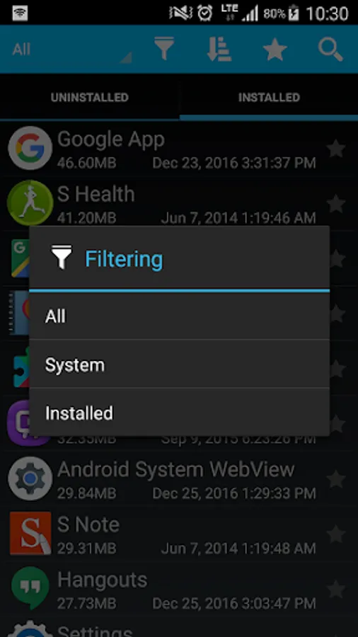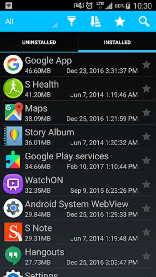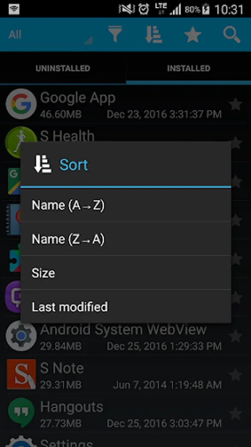 - Sort uninstalled and installed applications by name, size, and last modified.