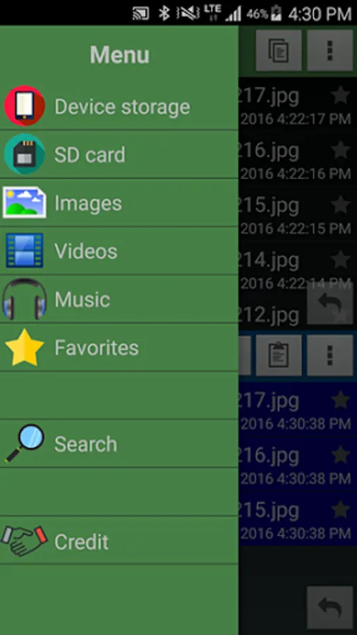 - Share the files with other app (Google Drive, Dropbox, etc...).