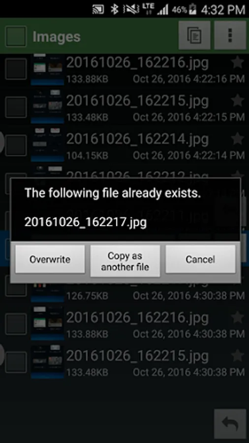 - If the same name's file or folder already exists, you can overwrite it or save the file which will be copied as another file.