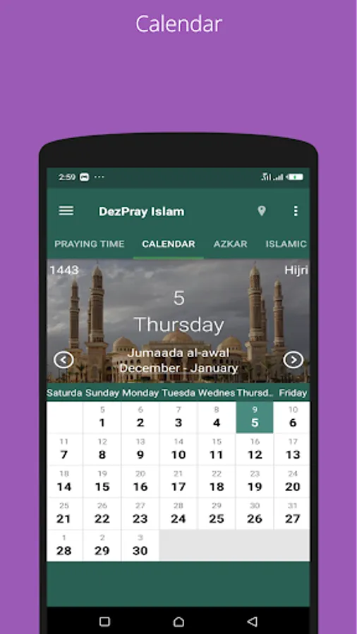 • Muslim Hijri calendar to estimate holy dates such as Eid-Ul-Fitr and Eid-Ul-Adha