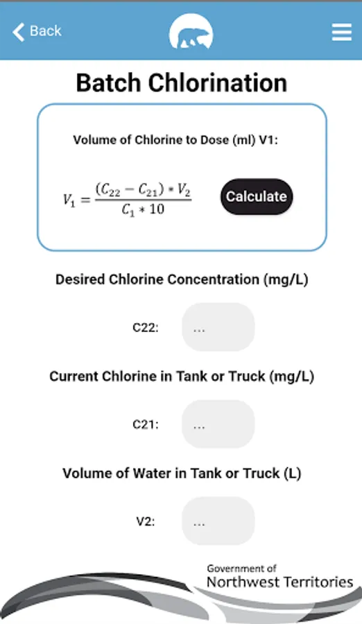 -Batch chlorination calculator.