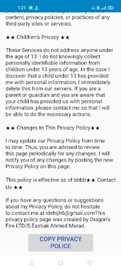 4.After generated privacy policy user can copy the generated privacy policy just click the copy button.