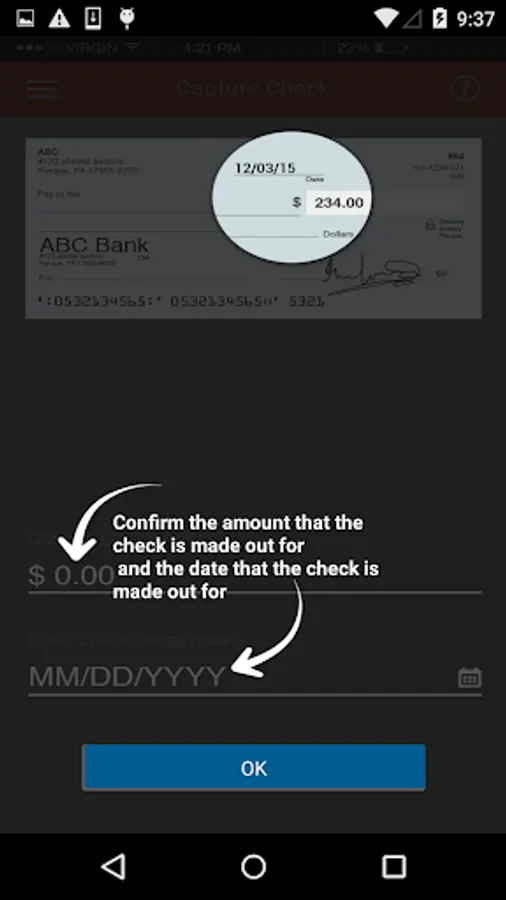 Avoid driving to a branch, long lines and filling out deposit slips. Using our mobile check deposit is easy. Simply log in, snap a picture through our app and follow the prompts. We will do the rest.