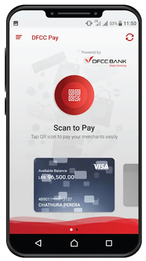 - Add your DFCC Credit Cards and make cashless payments to merchants.