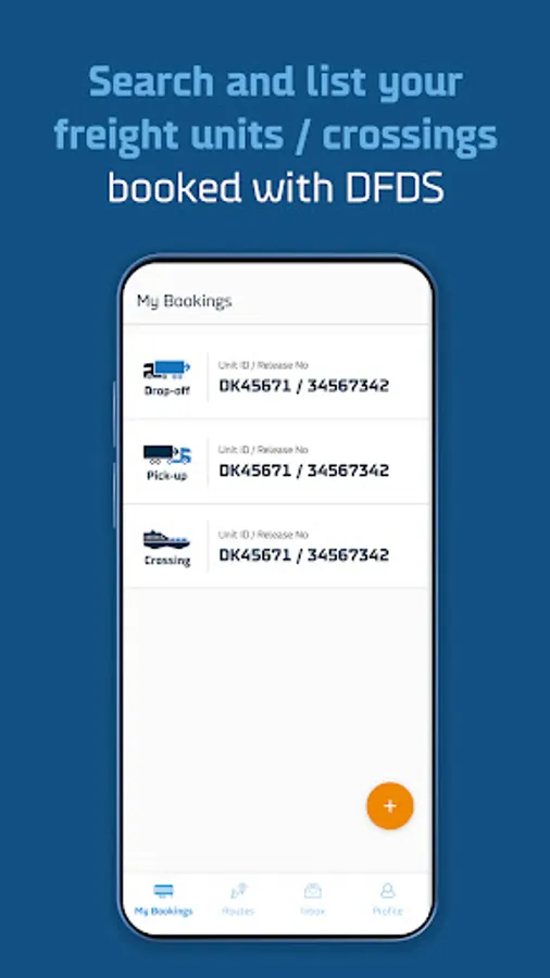Enter release number and unit ID to store the units that you need to pick up from or deliver to DFDS terminals. List bookings and remove them when you complete your task.