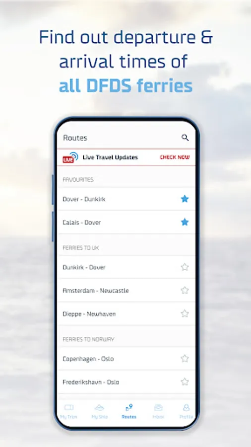 Find departure information for all DFDS ferry routes, follow departures that you are interested in to receive delay, cancellations or traffic notifications. Book the departure that you are interested in.