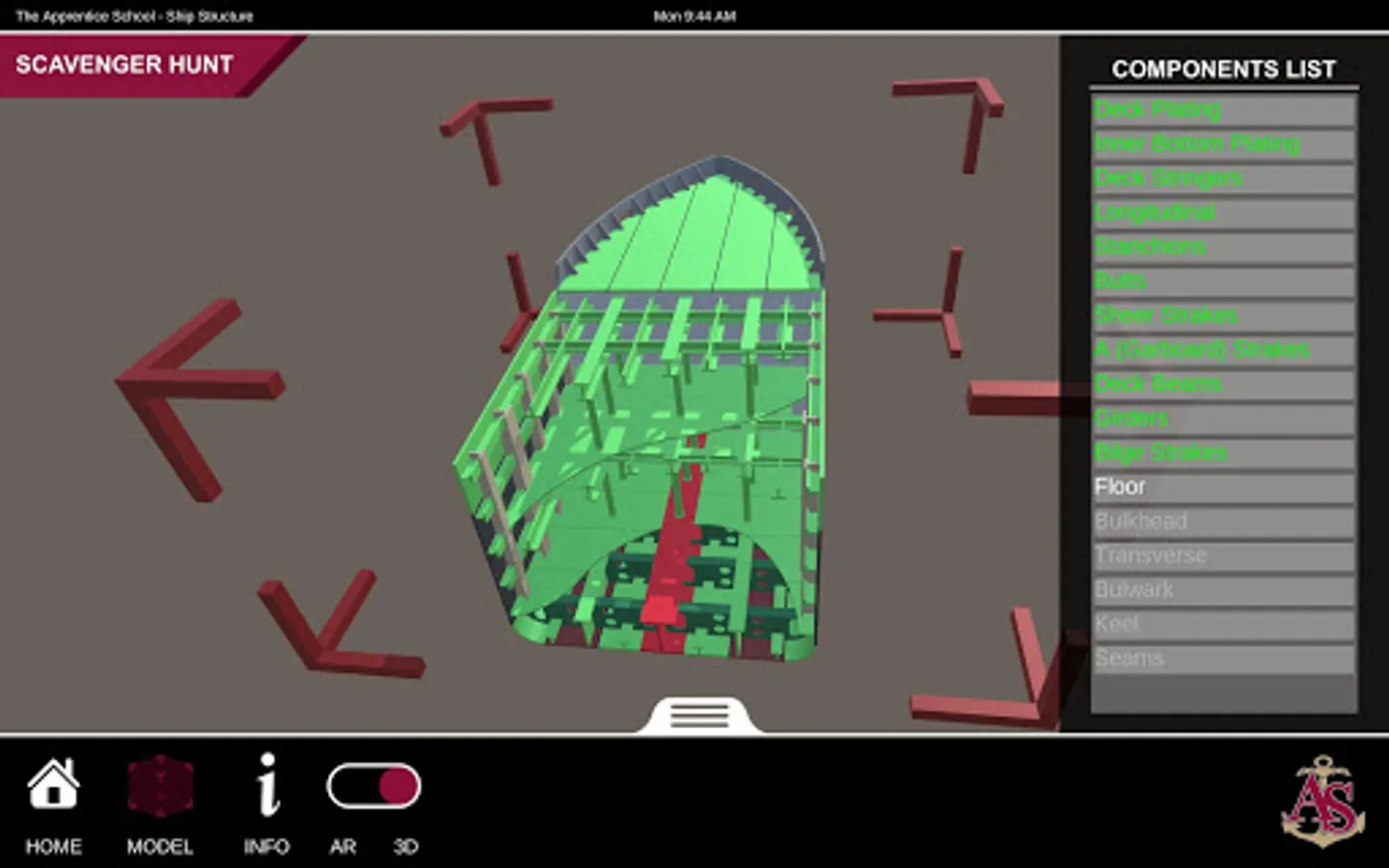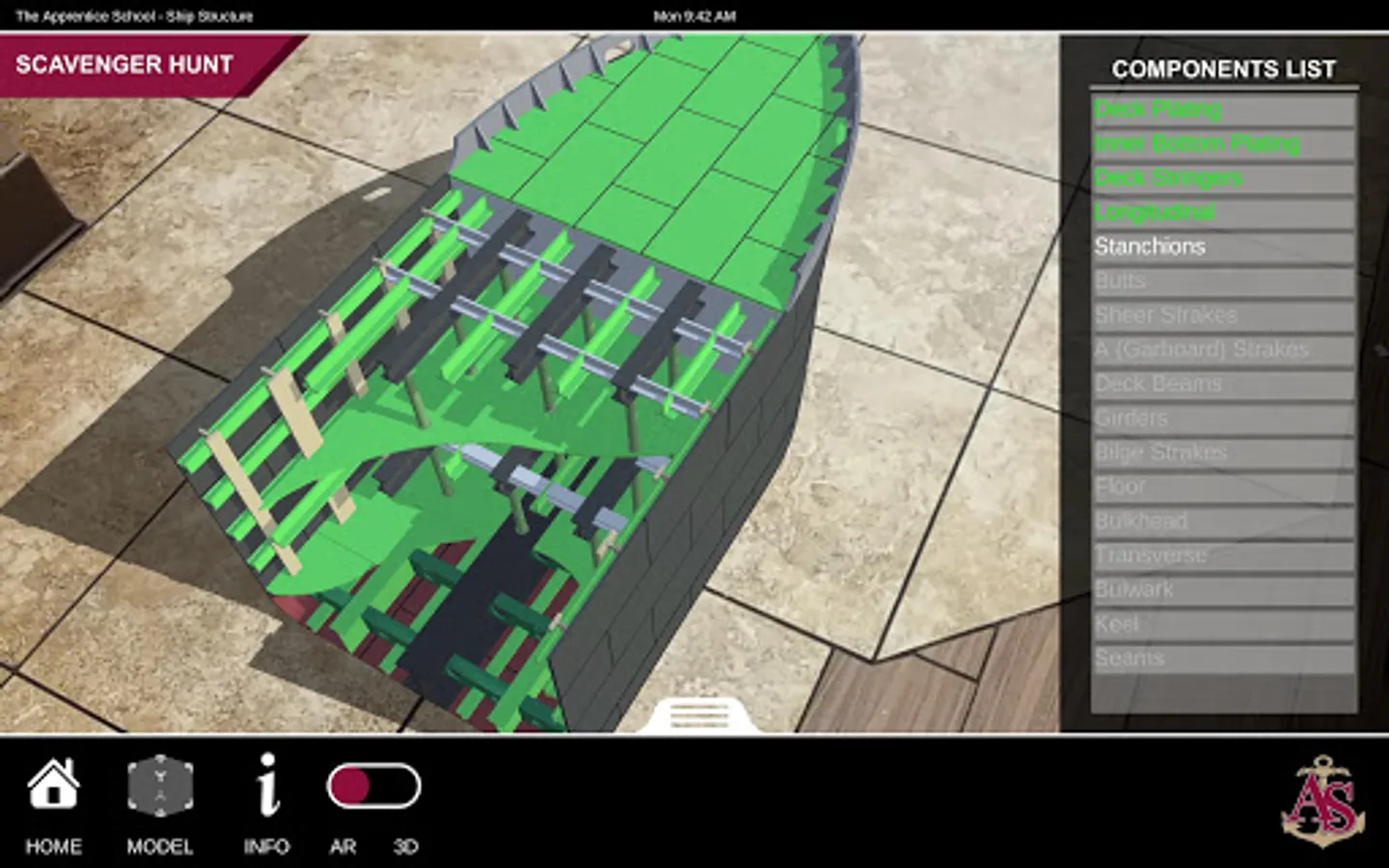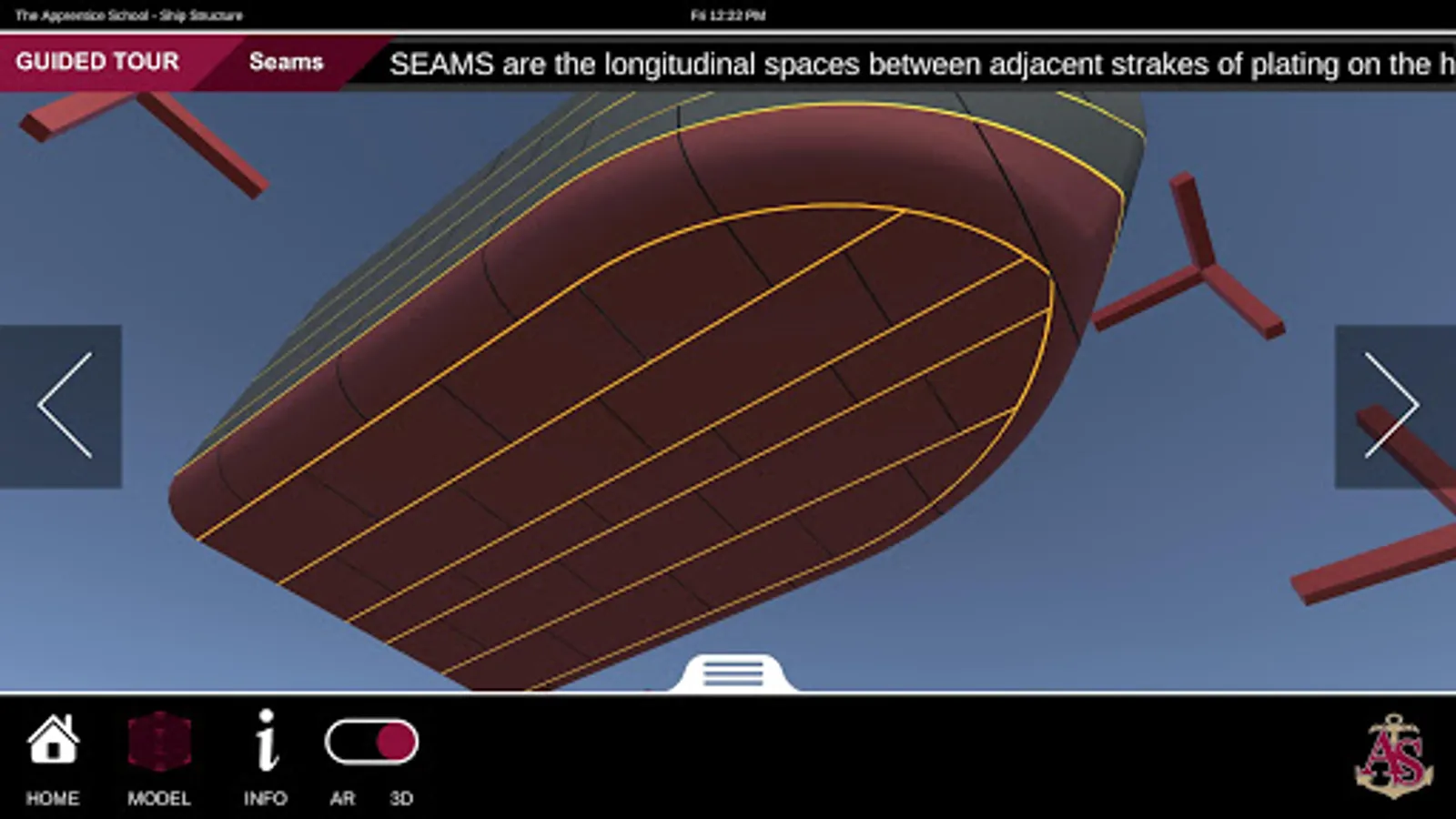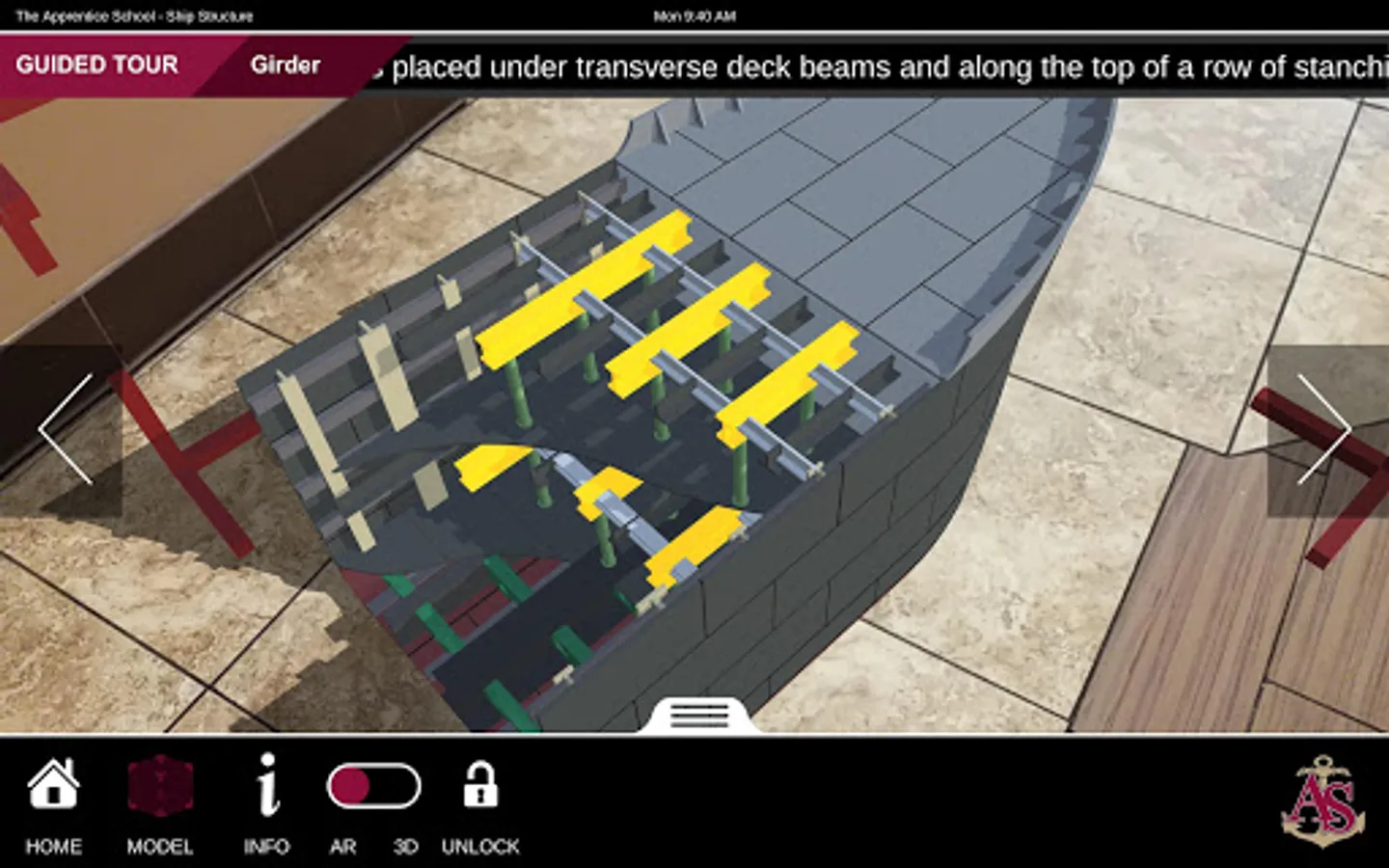 Ship Structure is an educational mobile AR experience that teaches ship terminology using a robustly detailed and fully interactive 3D model. The application contains three experiences: