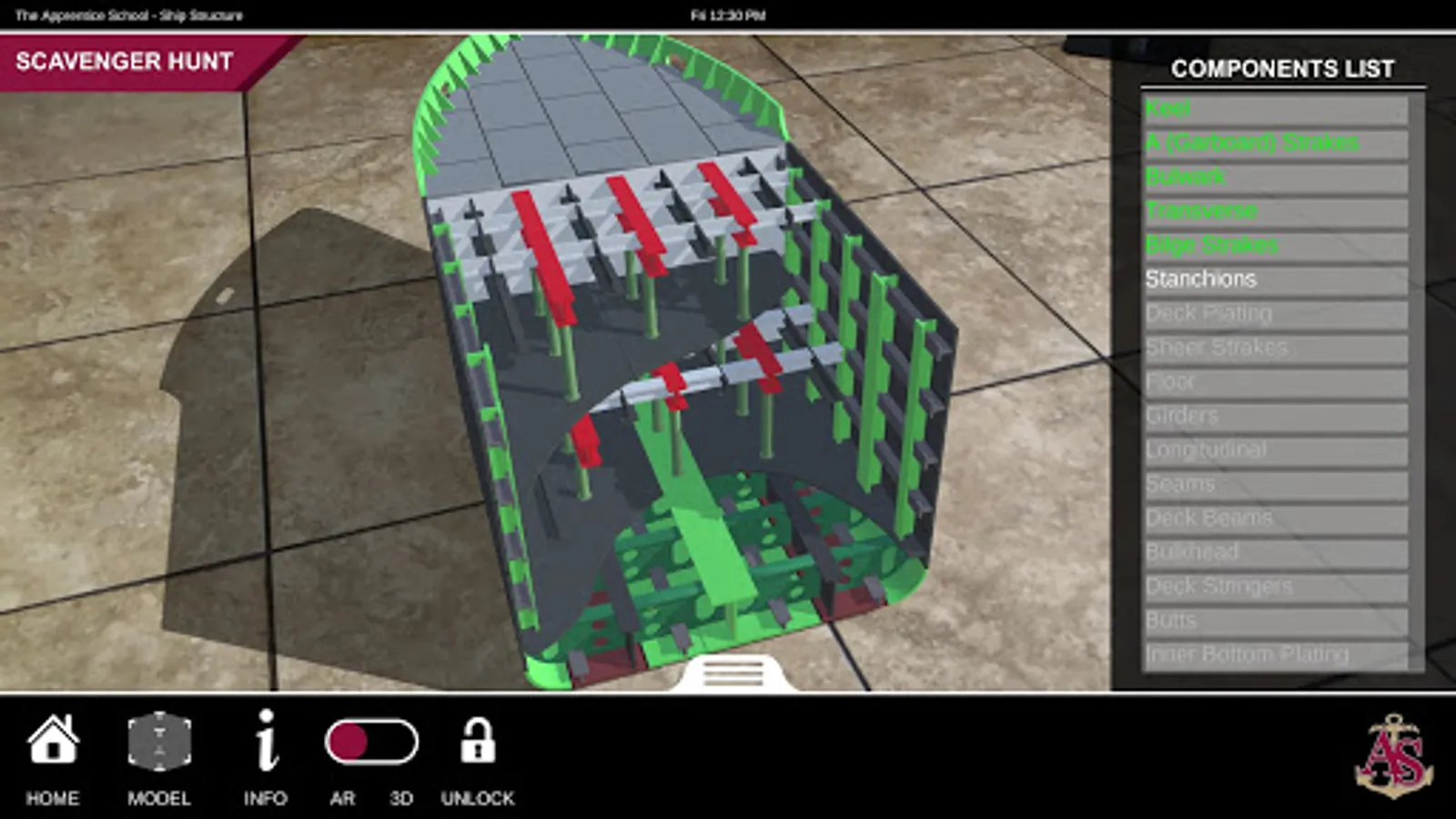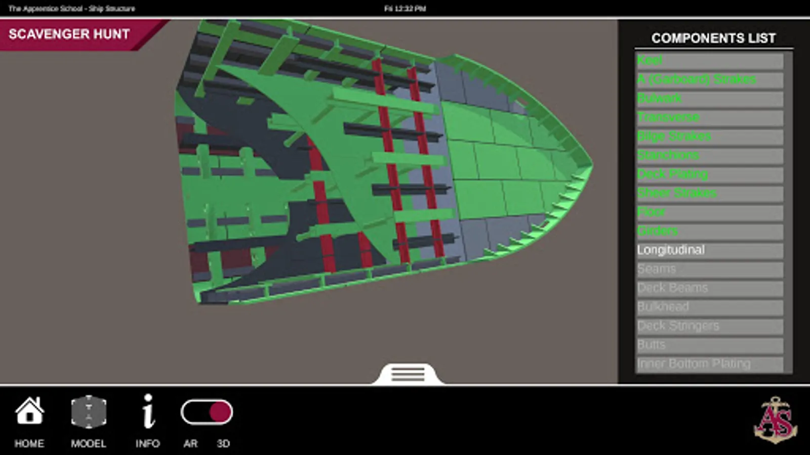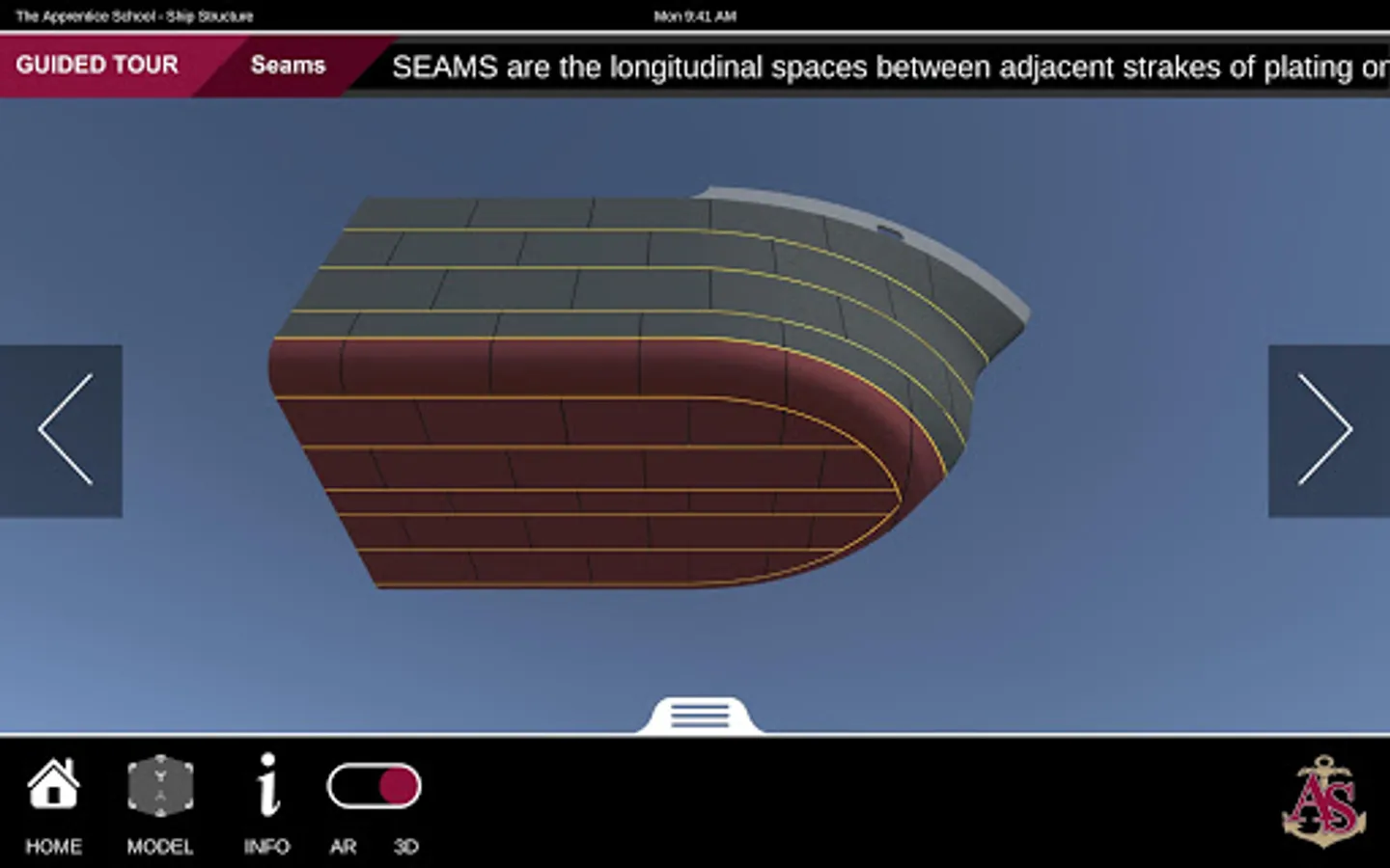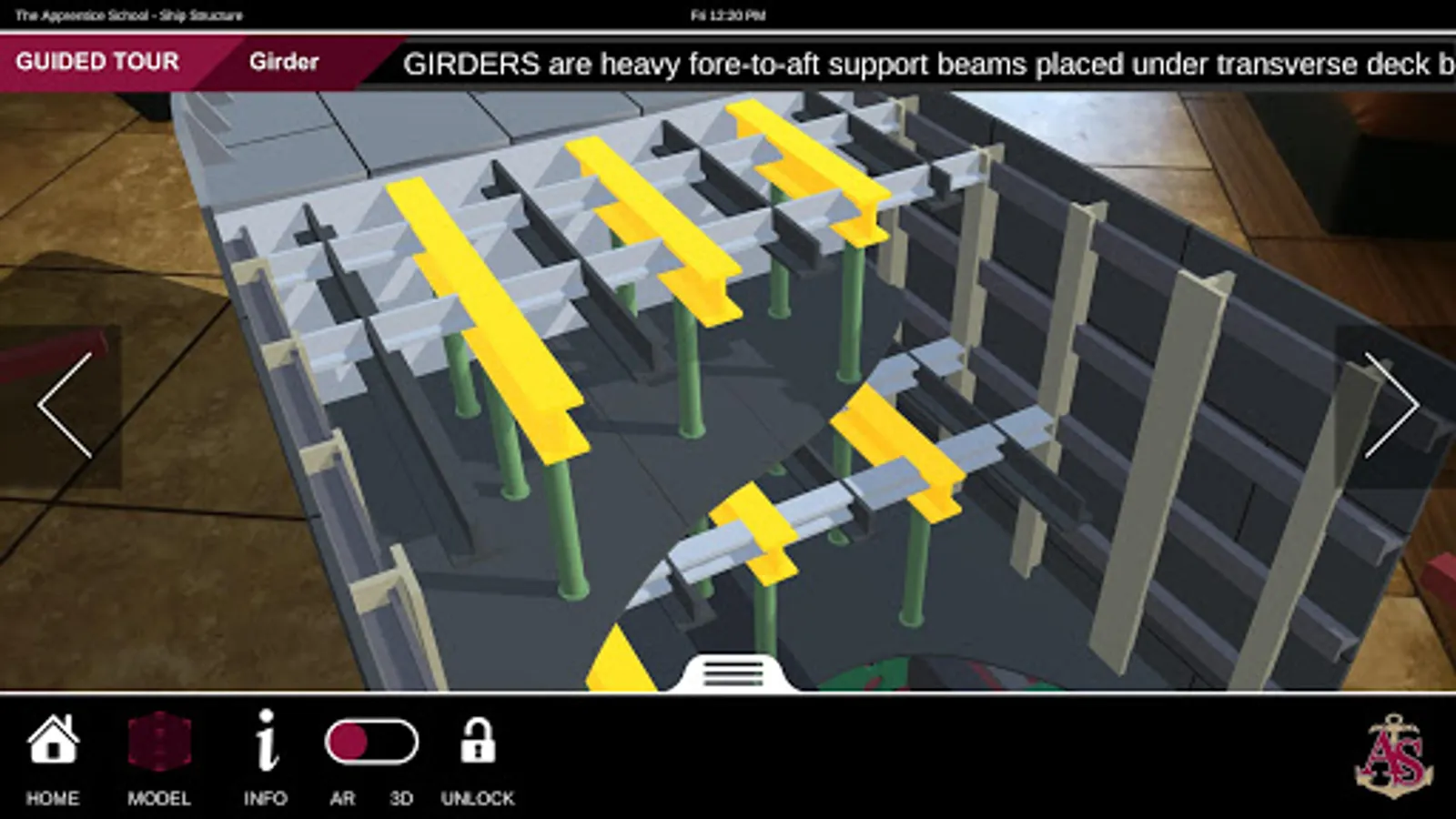 Ship Structure is an educational mobile AR experience that teaches ship terminology using a robustly detailed and fully interactive 3D model. The application contains three experiences: