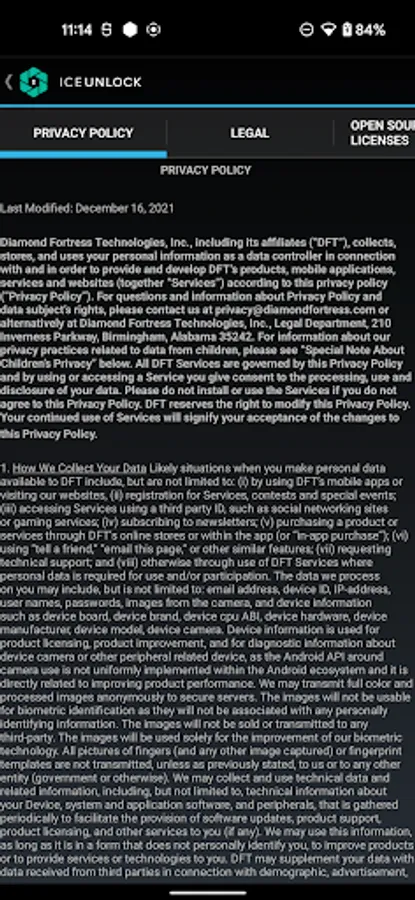 Captured images are algorithmically converted into a template using proprietary processing and the template is stored only within the secure storage area of your device; it can only be accessed by ICE Unlock. The data stored on your device cannot be used to reverse-engineer your fingerprint.