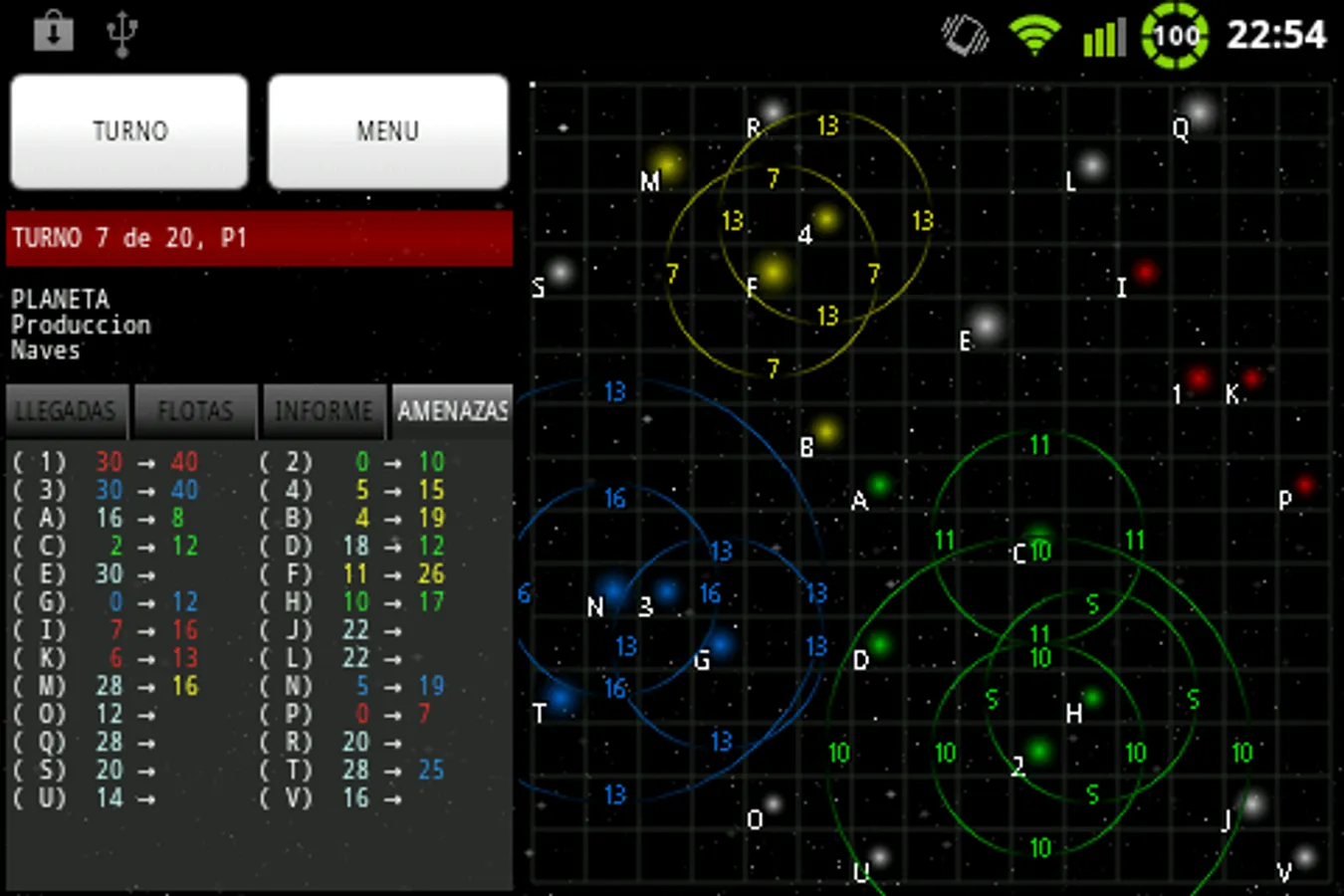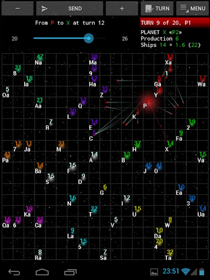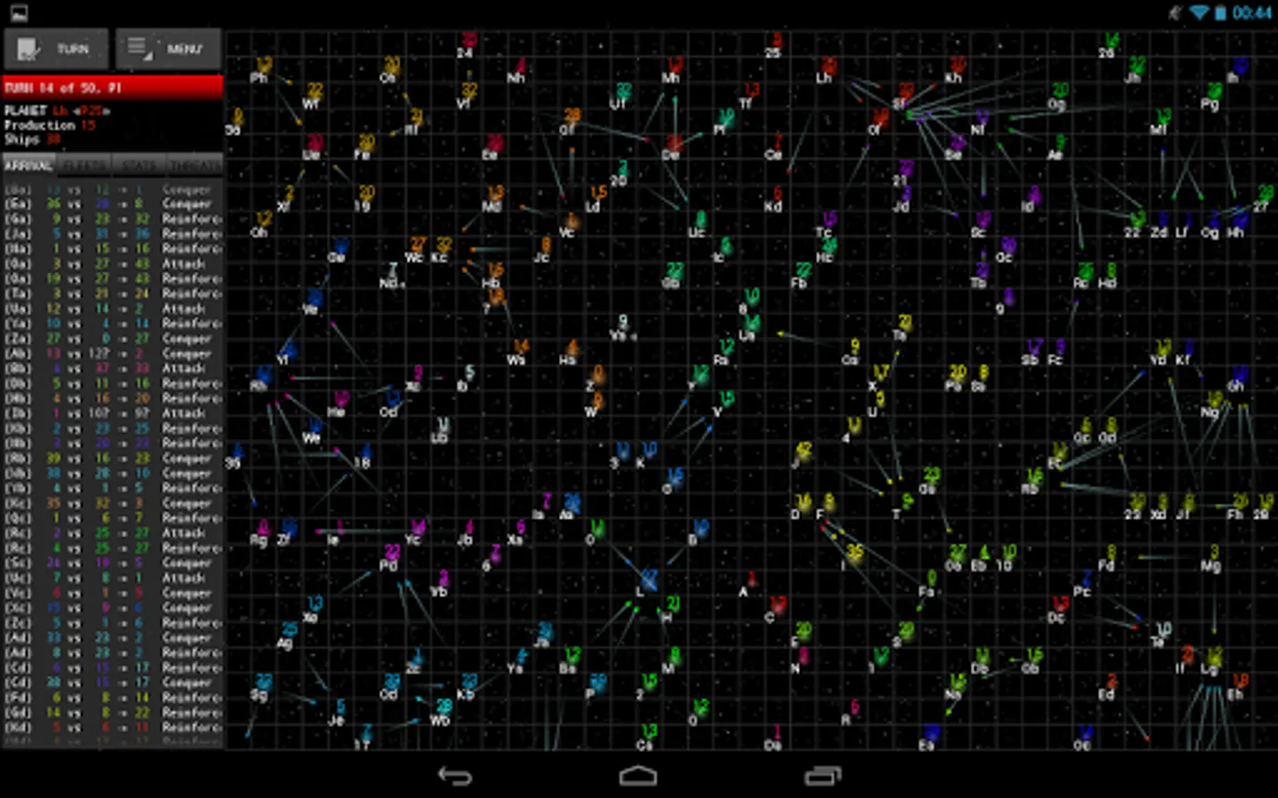 Players start with a planet that produces a number of ships each turn, and they can send fleets of ships in order to conquer other planets, with the final objective of conquering the whole galaxy, or to produce more ships than the opponents at the end of the last turn.