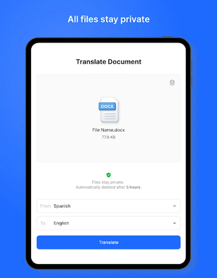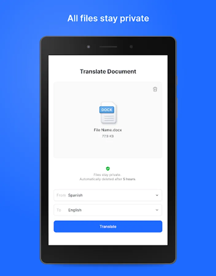 • large files supported! you can translate more than 500 pages