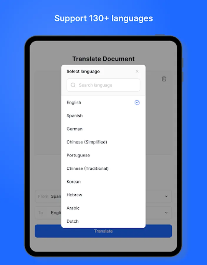• Instantly translate and preserve the layout of any document format