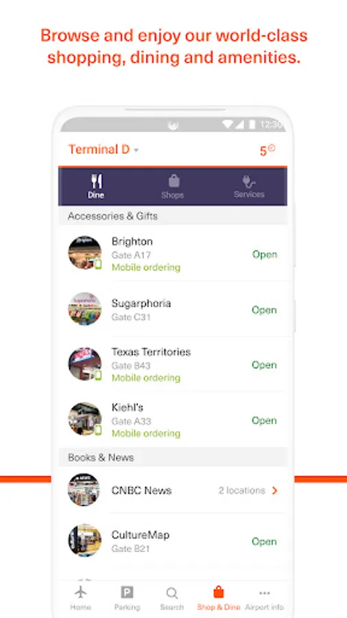 ✈ Browse through more than 200 shops, dining options, and services