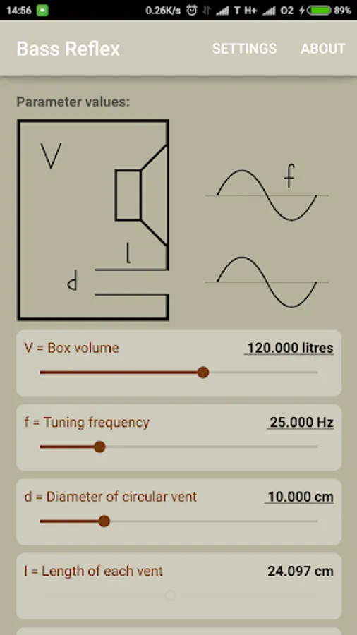 This app can be used for vented speaker box design (bassreflex tube length calculation) or for reverse analysis of existing solutions.