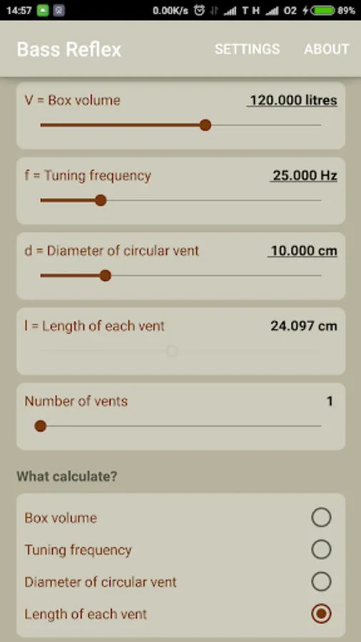 This app can be used for vented speaker box design (bassreflex tube length calculation) or for reverse analysis of existing solutions.