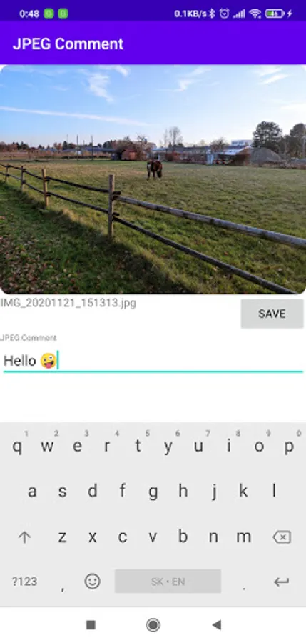 Digital photos (e.g. taken by your camera) are stored in your mobile as JPEG files. Thanks to the JFIF (JPEG File Interchange Format), digital photo data can be stored into file. But JFIF offers not only storing photo's visual data, but also offers storing other useful data (like user comments, Exif, ...). This application brings to you handy interface to attach (write, rewrite or remove) photo comments into JPEG file. If you copy your photo somewhere, comment is always travelling with photo and cannot be lost. Sure, photo's pixel data are not touched with text comments ;-)