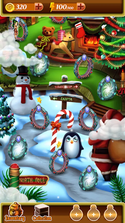As you search for hidden objects throughout your adventure, you'll encounter interesting characters who need help, or are ready to give you a hand! Meet Santa 🎅 and Mrs Claus 🤶, a pair of overworked Christmas Elves, an out of shape Reindeer, a disgruntled Snowman, and a very lost Penguin! Help them find objects they've lost and receive special rewards in return.