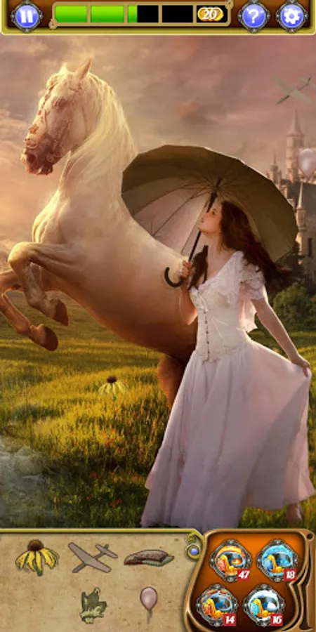 Find mysterious items throughout the world that can help you in your hidden objects quest. Use magic rings to help find hidden objects, quaff potions to apply temporary boosts, and use spells to recharge your energy.