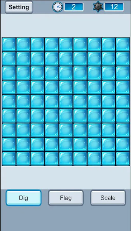 The game is played on a 9 * 9 (primary), 18 * 12 (intermediate), 25 * 16 (senior) arranged at random matrix of a certain amount of mines (primary to 12 , intermediate for the 31 senior as 88.) Open box one by one by the players to find out all the mines as the ultimate goal of the game. If the player opened the box there are mines, the game is over.