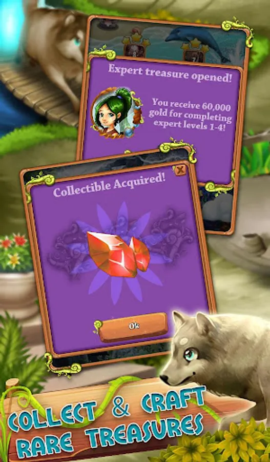 As you go on your treasure quest along the gold trail you’ll discover ancient, rare artifacts. Collect all the crafting tiles for an artefact and you’ll be able to craft it – keep your treasures or sell them for gold coins, it’s your choice! At the end of each level, you’ll also be able to open a bonus chest. What could they contain? There’s only one way to find out!