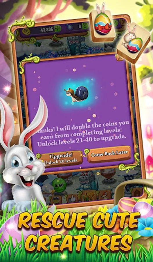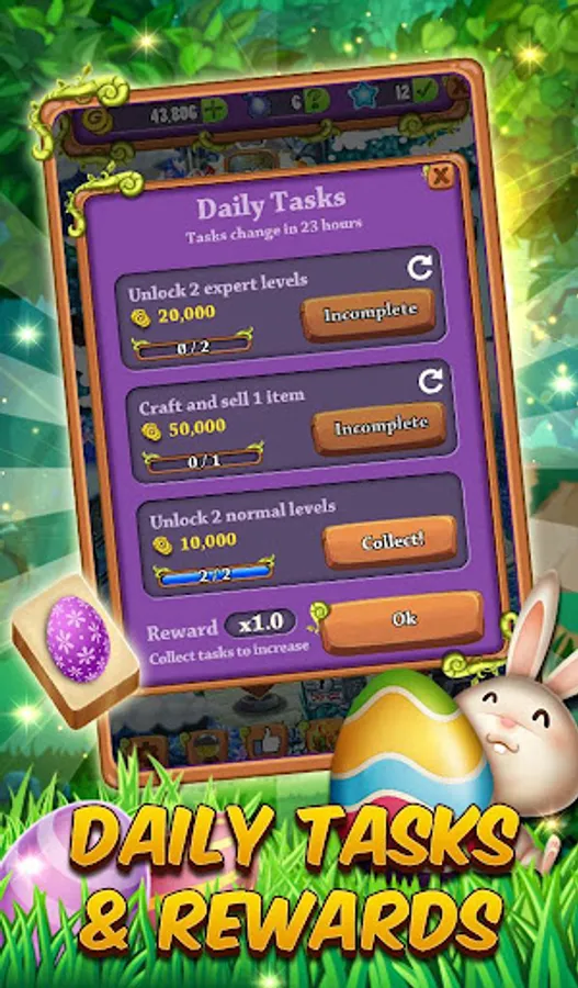 There’s so much to do on your mahjong solitaire adventure – craft rare treasures, collect beautiful artwork and rescue creatures from the evil mahjong witch! As you play your pet will grow and develop special powers to help on your quest.