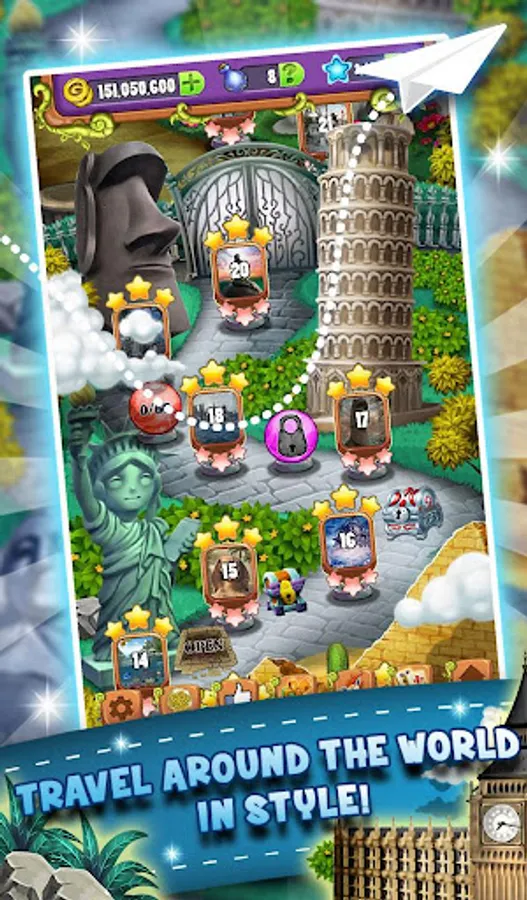 As you go on your city adventure world tour you’ll discover ancient, rare artifacts. Collect all the crafting tiles for an artefact and you’ll be able to craft it – keep your treasures or sell them for gold coins, it’s your choice! At the end of each level, you’ll also be able to open a bonus treasure chest. What could they contain? There’s only one way to find out!