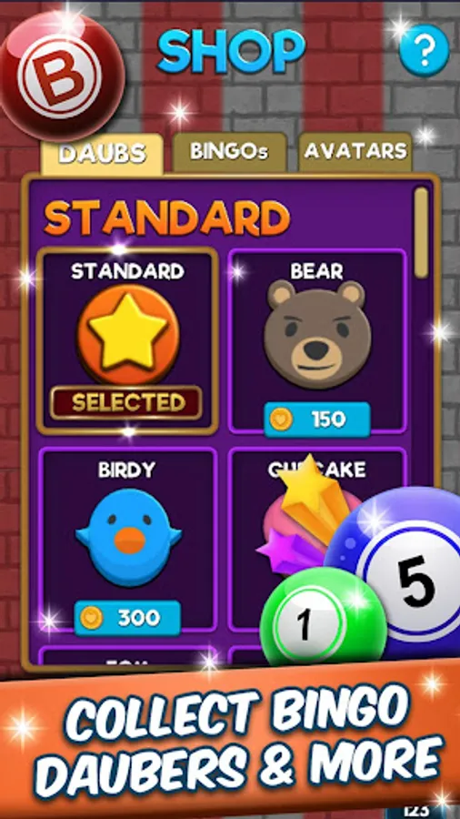 You can play 1, 2 or 4 card bingo games and select your bet per card. Simply daub your numbers as the bingo caller says them and get as many BINGOs as you can before the time runs out! With your winnings you’ll be able to unlock lots of new daubers, bingo animations and cute avatars. Fancy a more relaxing bingo game experience? Take it easy in practice mode!