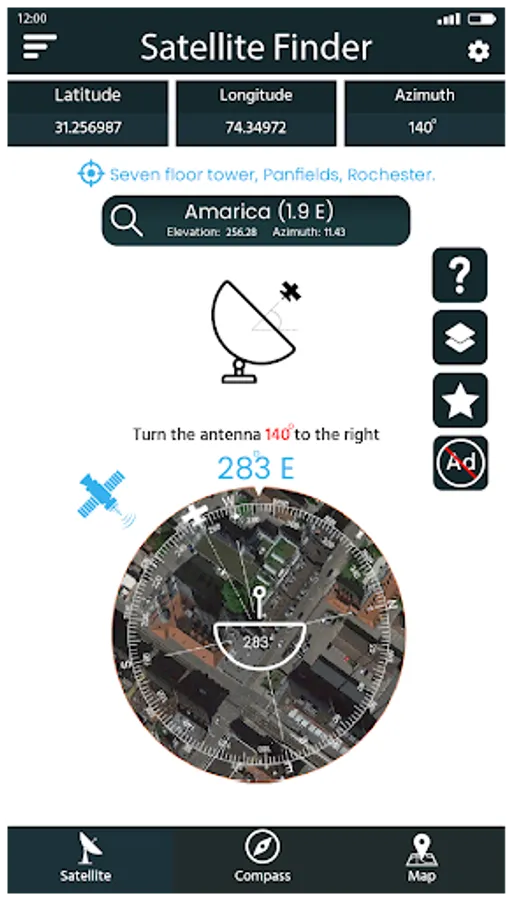 Quick Dish align satellite finder app is the best dish setting app that uses a satellite director map algorithm to find satellite for all TV dishes. Dish satellite coverage map finds out the accurate latitude and longitude into satellite finder for al TV dish.