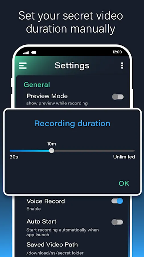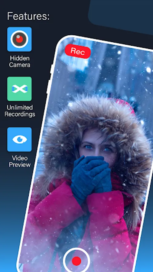 Spy camera is an easy-to-use app with plenty of customizable settings to fit your needs. You can start recording hidden videos by using a video recorder background for Android with just one click and choose from different recording modes. You can also record videos during phone calls and schedule recordings at specific times and dates in a video recorder with an audio app.