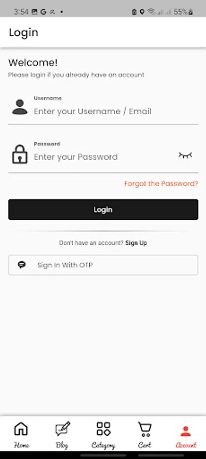 4- Log in with either the phone number or the email and the password that you registered in creating the account