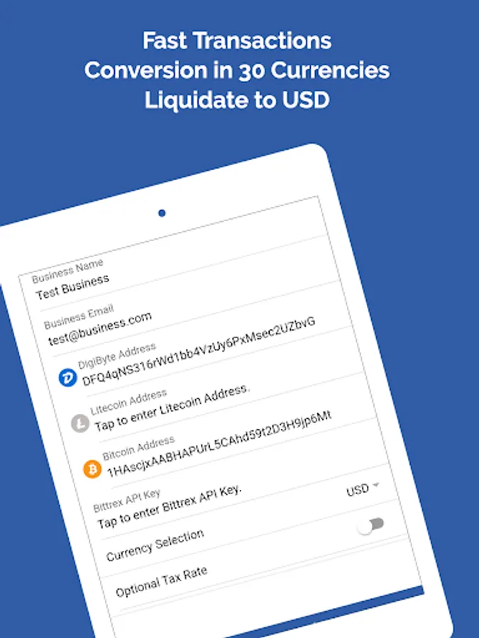 Experience very fast transactions, low fees and send customer receipts by email. Now you can liquidate your coins for USD and lower your volatility risk.