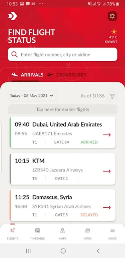 Kuwait International Airport (KWI) official application. This app provides complete information for Kuwait International Airport (KWI) including arrivals, departures, terminal map, directions to and from the airport and more.