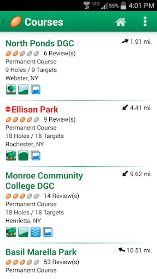 * Filter your course searches using criteria ranging from hole count to the rating on DGCourseReview to how wooded a course is (among many other filters!)